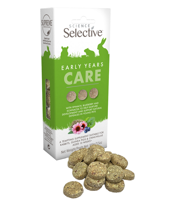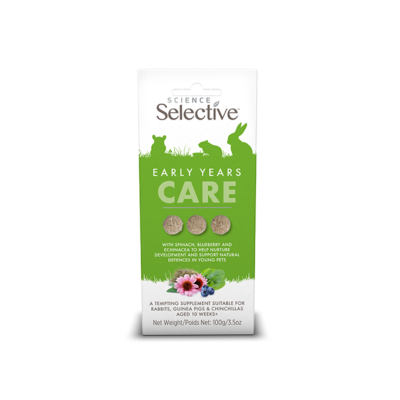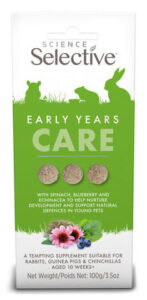 Science Selective Early Years Care Supplements are formulated to help nurture growth and natural defences with spinach, blueberry, and echinacea to help nurture development & support natural defences in young pets.