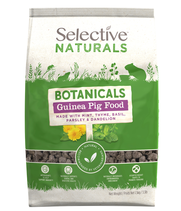 Featuring a variety of nugget shapes, every nibble promotes instinctive natural foraging behaviours. Selective Naturals Botanicals help mimic their wild feeding instincts and provides a source of environmental enrichment.